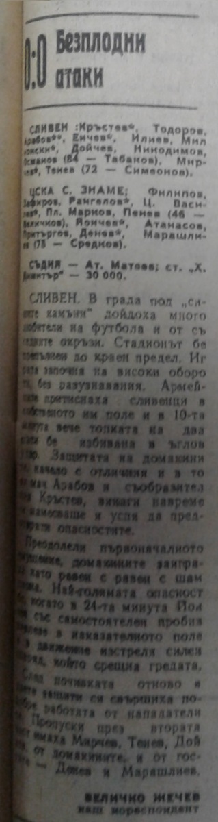 Димитар Пенев (ЦСКА) провёл свой 350-й матч в А РФГ. Георги Денев (ЦСКА) провёл свой 200-й матч в А РФГ.