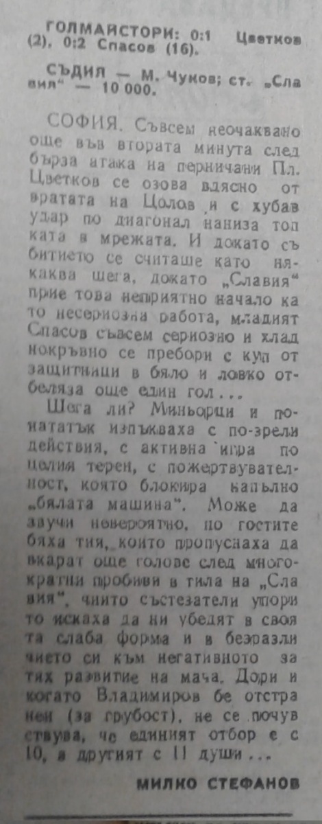 «Славия» София - «Минёр» Перник - 0:2