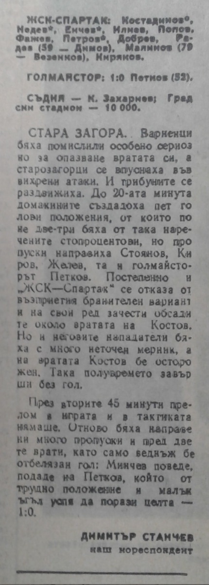 «Берое» Стара-Загора - «ЖСК-Спартак» Варна - 1:0