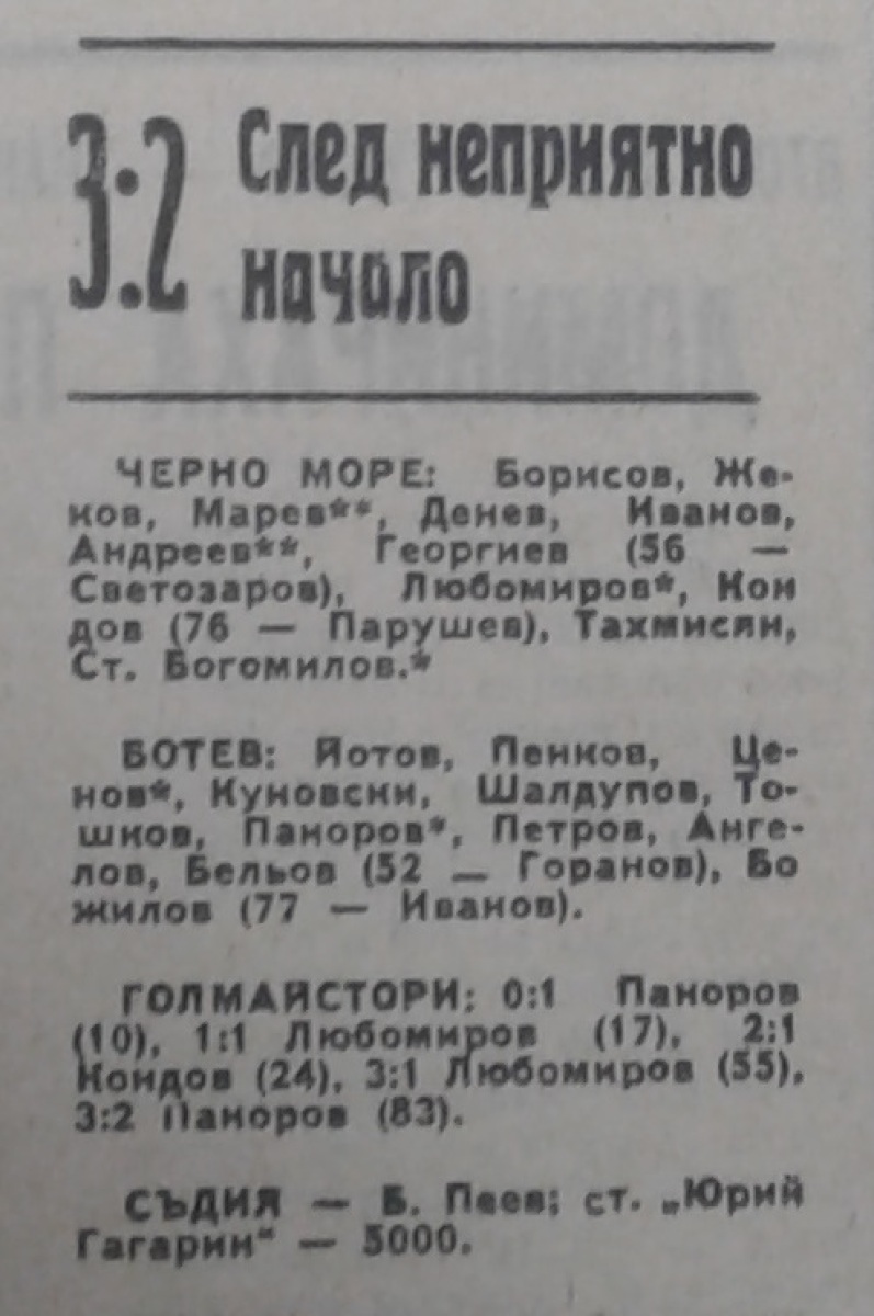 «Черно море» Варна - «Ботев» Враца - 3:2