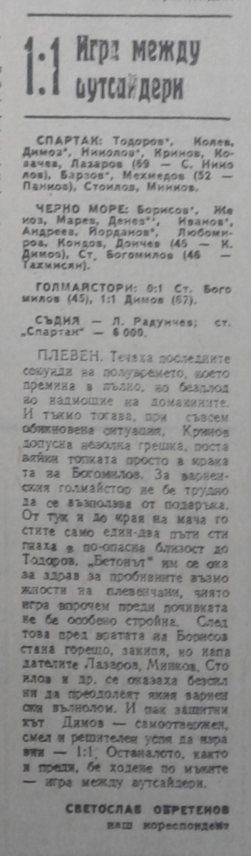 «Спартак» Плевен - «Черно море» Варна - 1:1