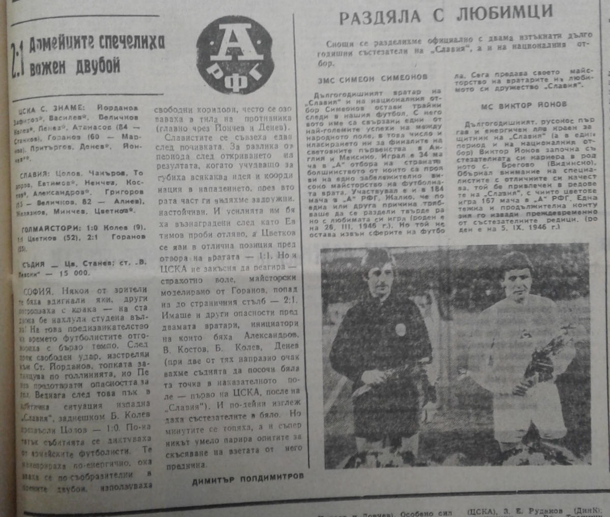 «ЦСКА Септемврийско Знаме» София - «Славия» София - 2:1