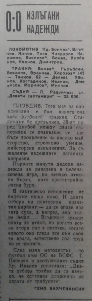 Станчо Бончев (Локомотив Пловдив) провёл свой 300-й матч в А РФГ. Стоян Вранчев (Тракия Пловдив) дебютировал в А РФГ.Любен Радунчев из Софии провёл свой 150-й матч в качестве рефери в А РФГ.