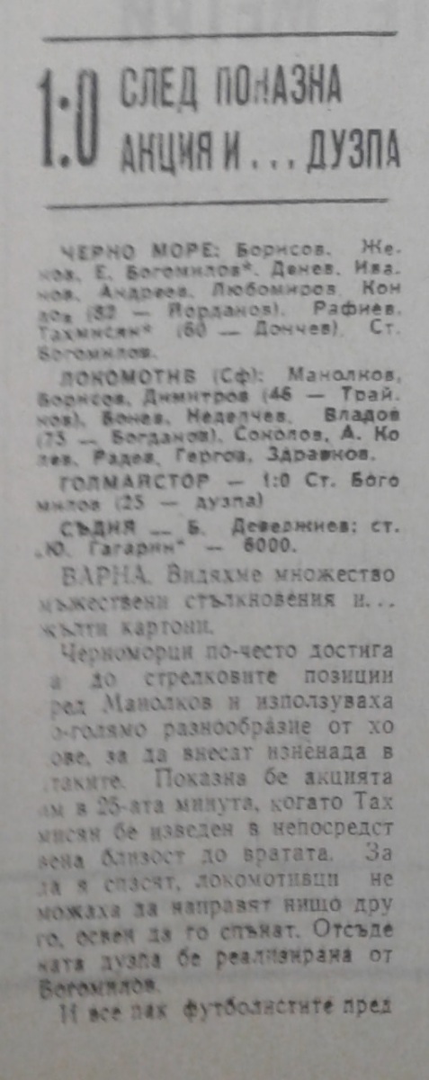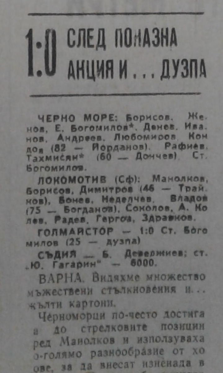 «Черно море» Варна - «Локомотив» София - 1:0