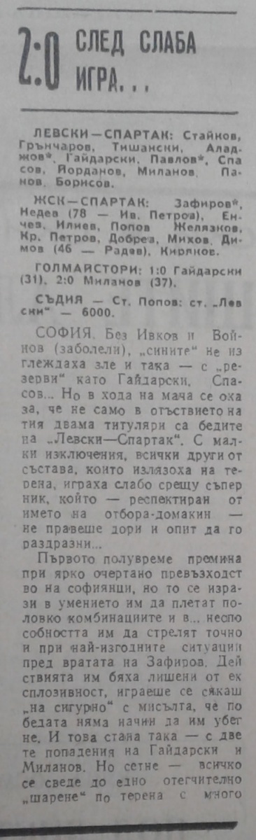 «Левски-Спартак» София - «ЖСК-Спартак» Варна - 2:0