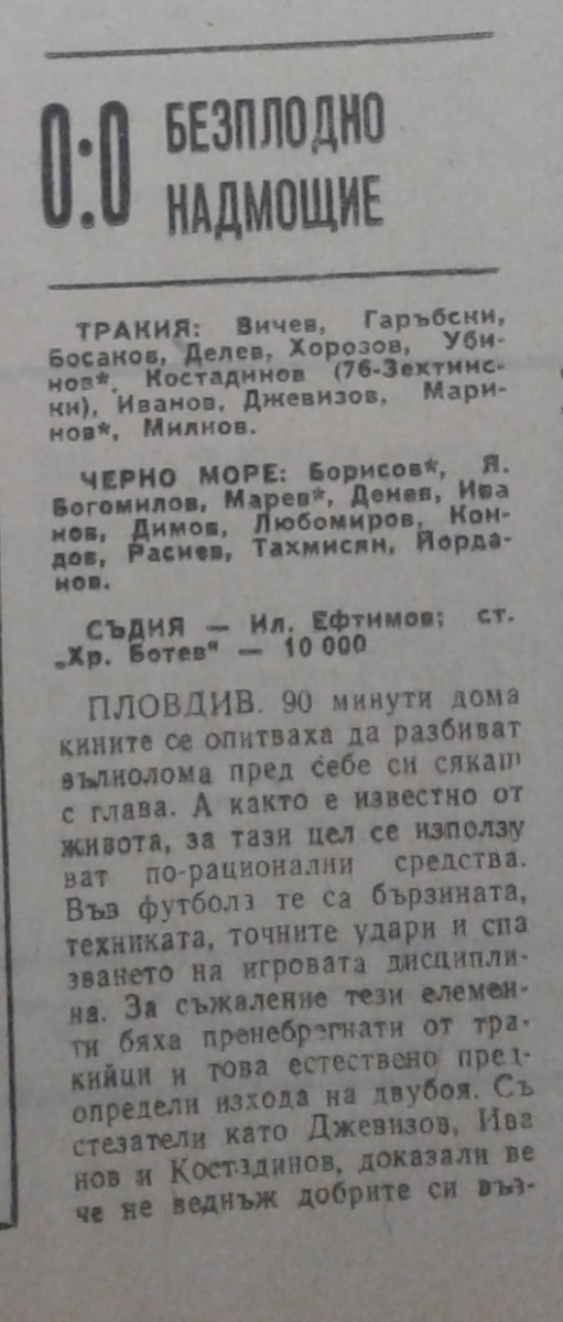 «Тракия» Пловдив - «Черно море» Варна - 0:0