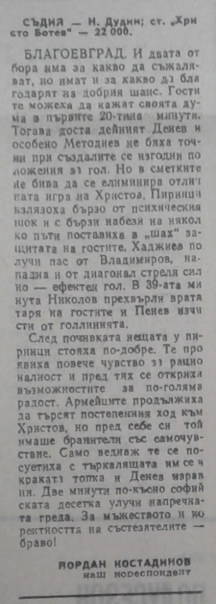 «Пирин» Благоевград - «ЦСКА Септемврийско Знаме» София - 1:1