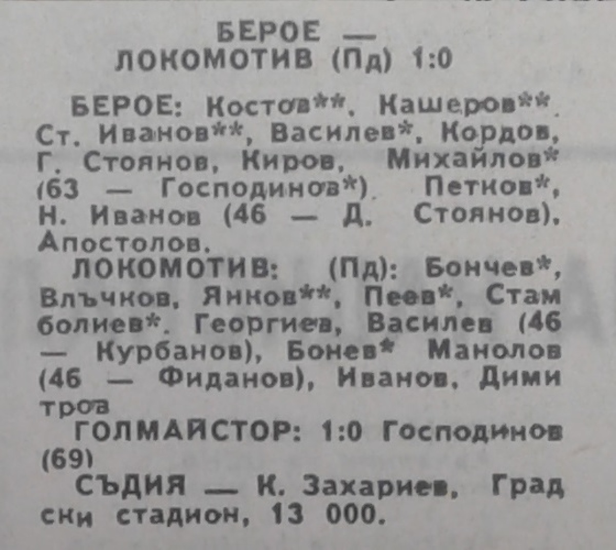 «Берое» Стара-Загора - «Локомотив» Пловдив - 1:0