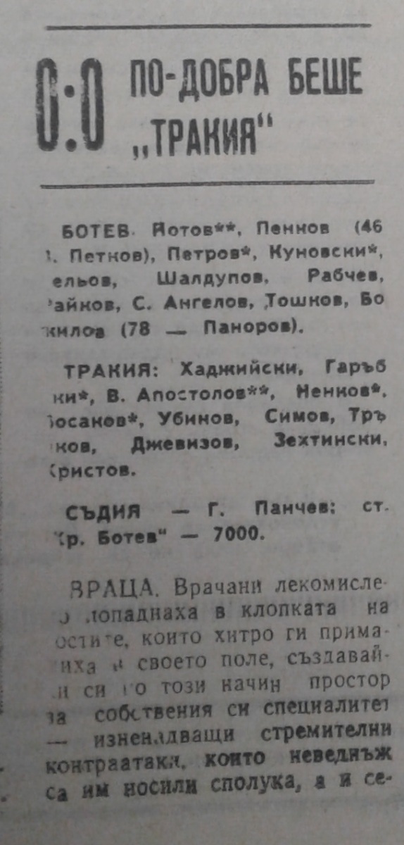 «Ботев» Враца - «Тракия» Пловдив - 0:0