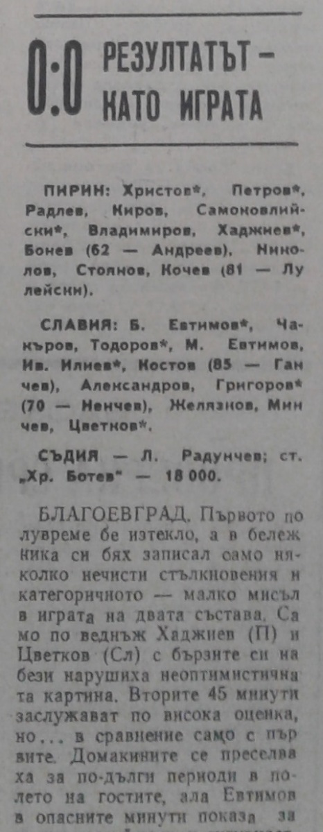 «Пирин» Благоевград - «Славия» София - 0:0