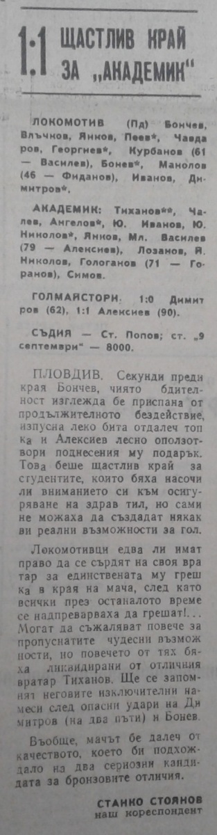 «Локомотив» Пловдив - «Академик» София - 1:1