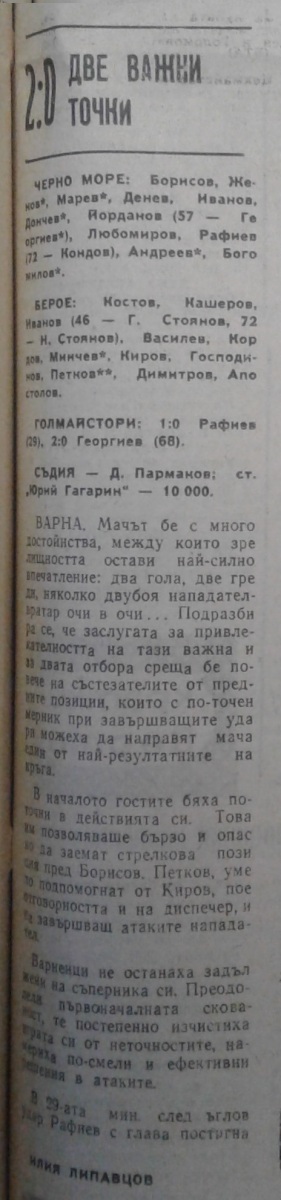 «Черно море» Варна - «Берое» Стара-Загора - 2:0