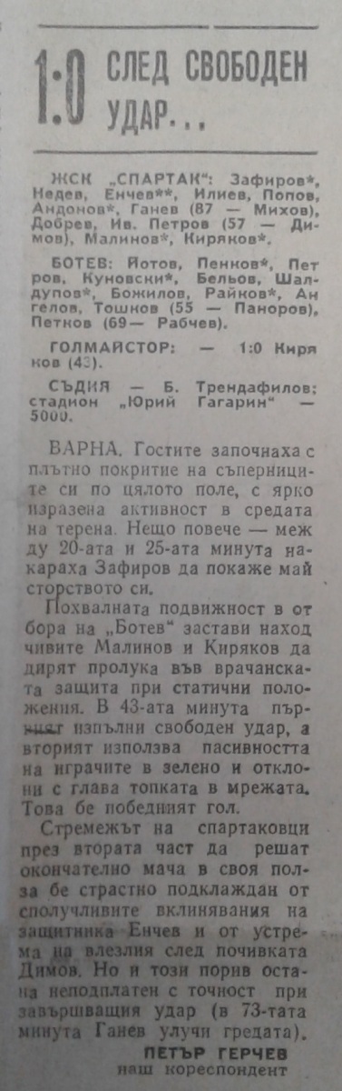 «ЖСК-Спартак» Варна - «Ботев» Враца - 1:0