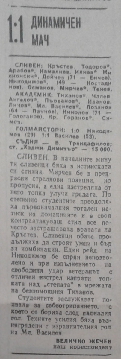 АФД Сливен - «Академик» София - 1:1