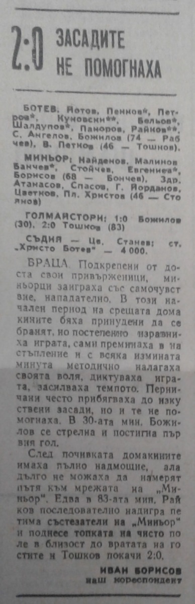 «Ботев» Враца - «Минёр» Перник - 2:0