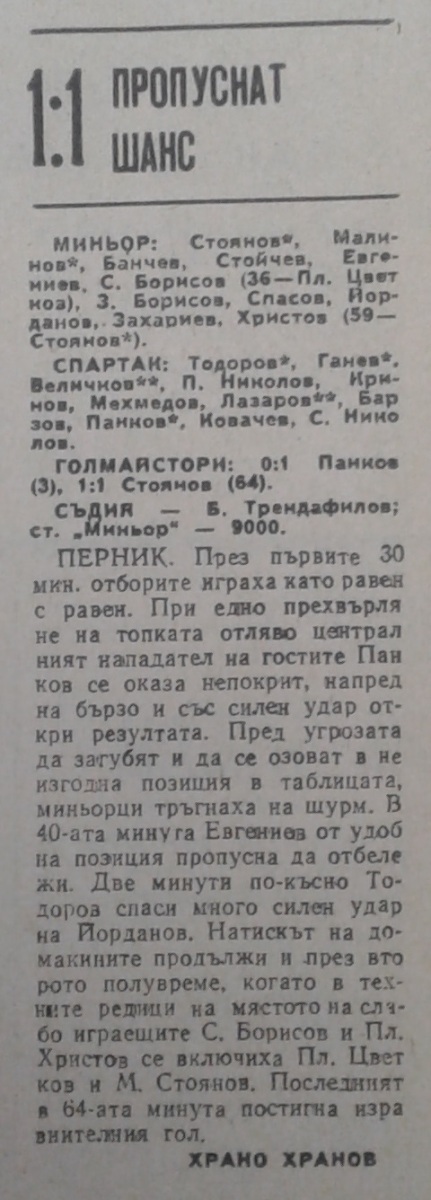 «Минёр» Перник - «Спартак» Плевен - 1:1