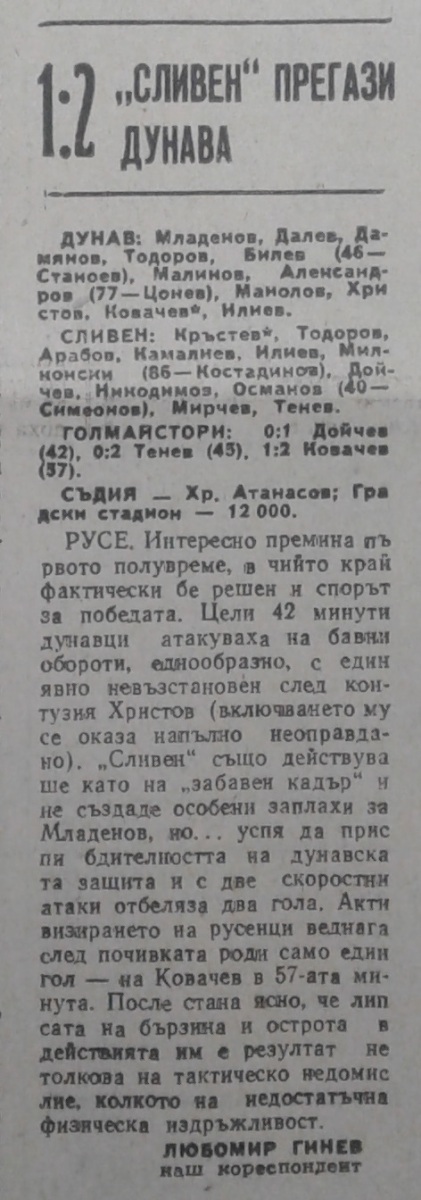 «Дунав» Русе - АФД Сливен - 1:2