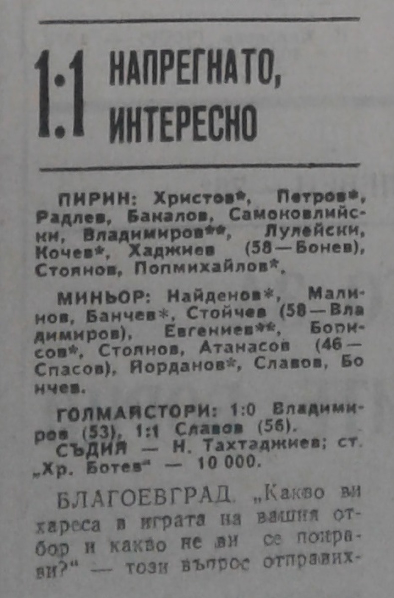 «Пирин» Благоевград - «Минёр» Перник - 1:1