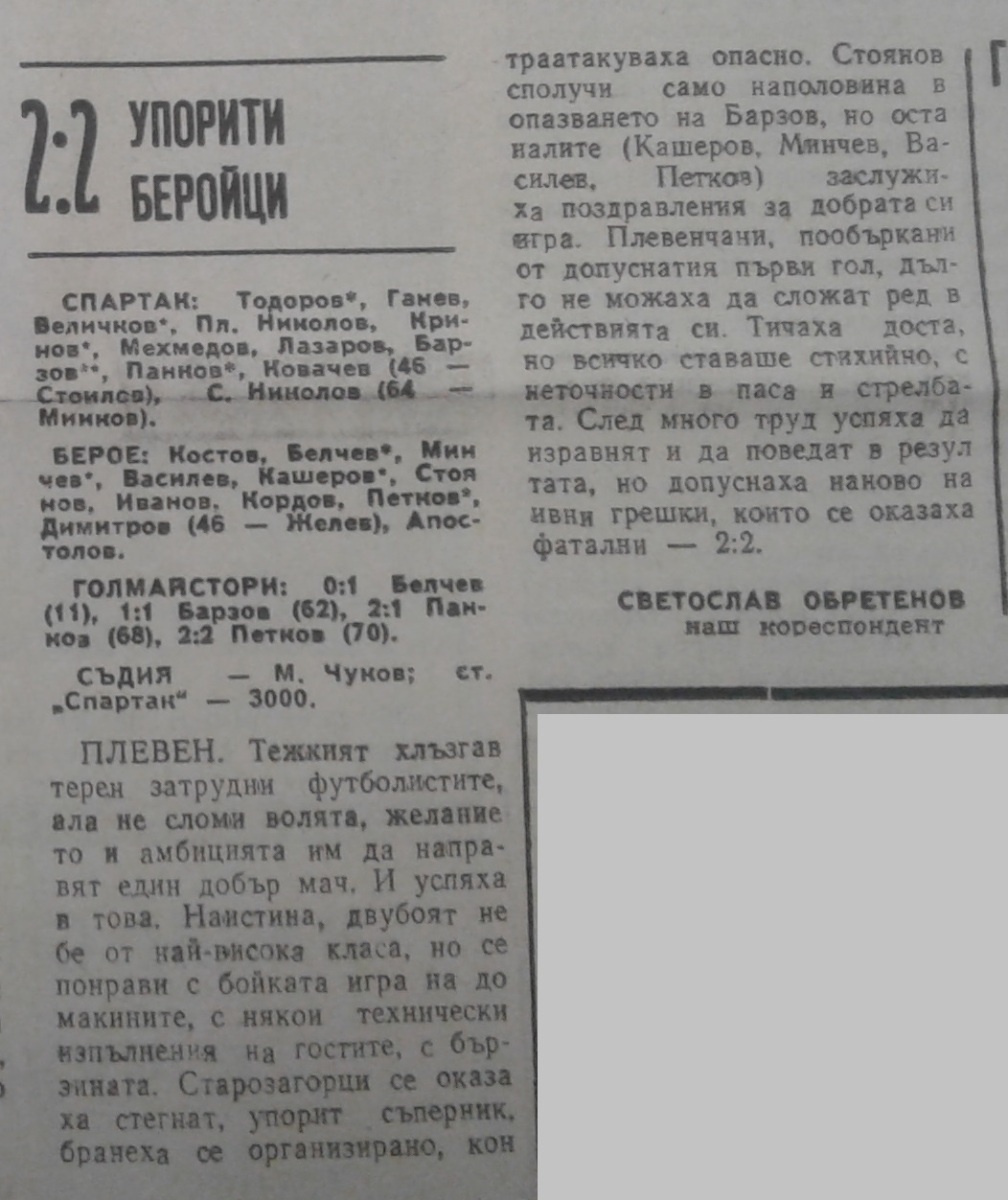 «Спартак» Плевен - «Берое» Стара-Загора - 2:2