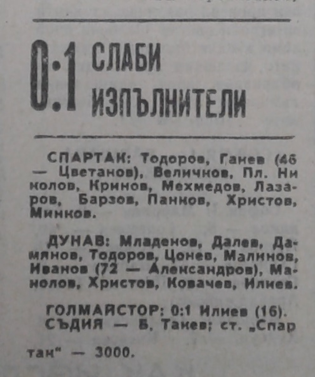 «Спартак» Плевен - «Дунав» Русе - 0:1