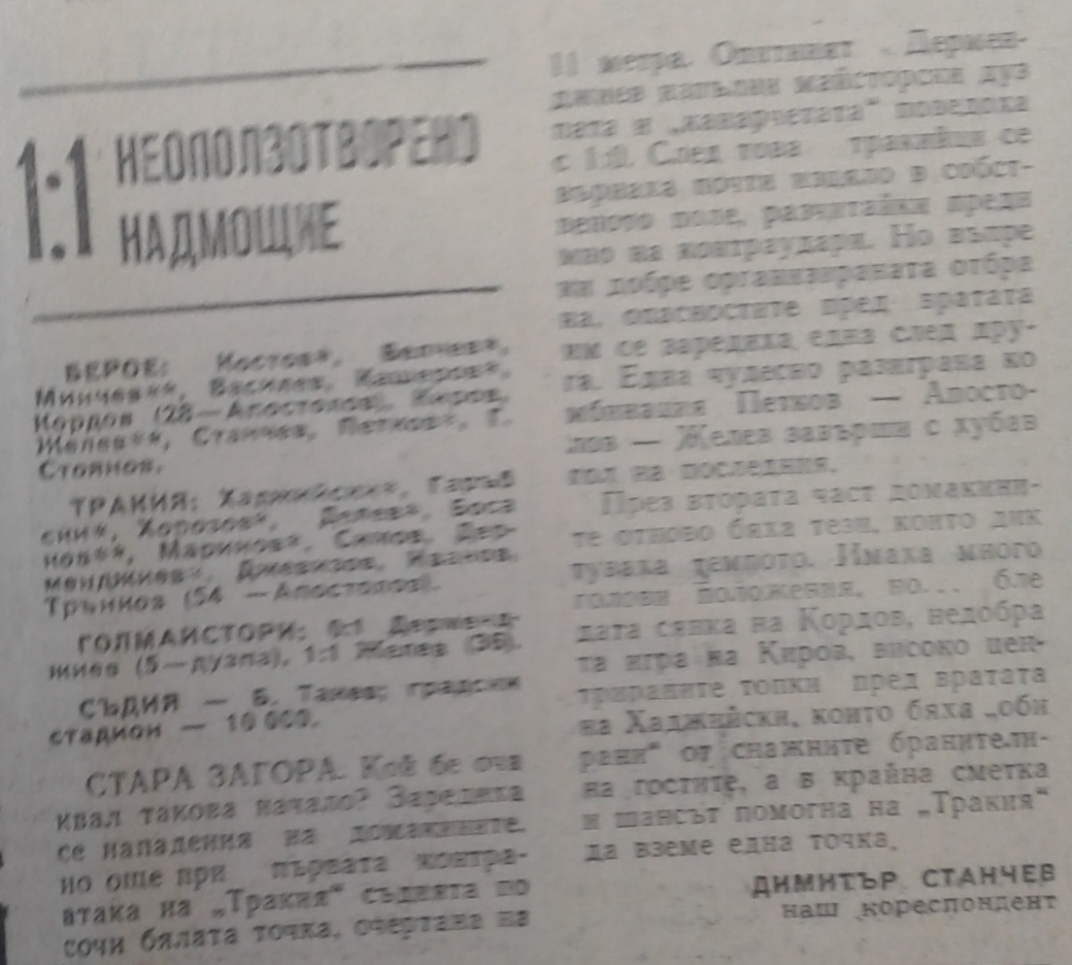 «Берое» Стара-Загора - «Тракия» Пловдив - 1:1