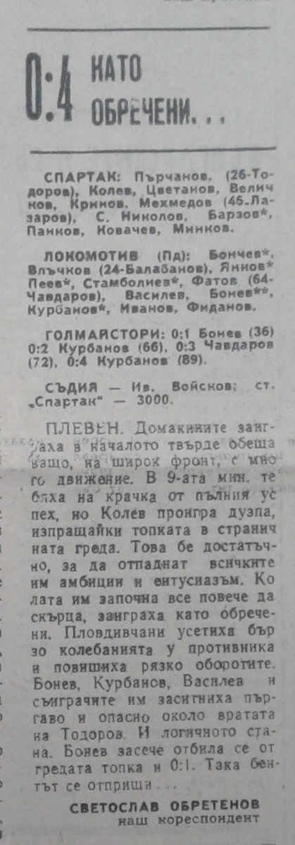 «Спартак» Плевен - «Локомотив» Пловдив - 0:4