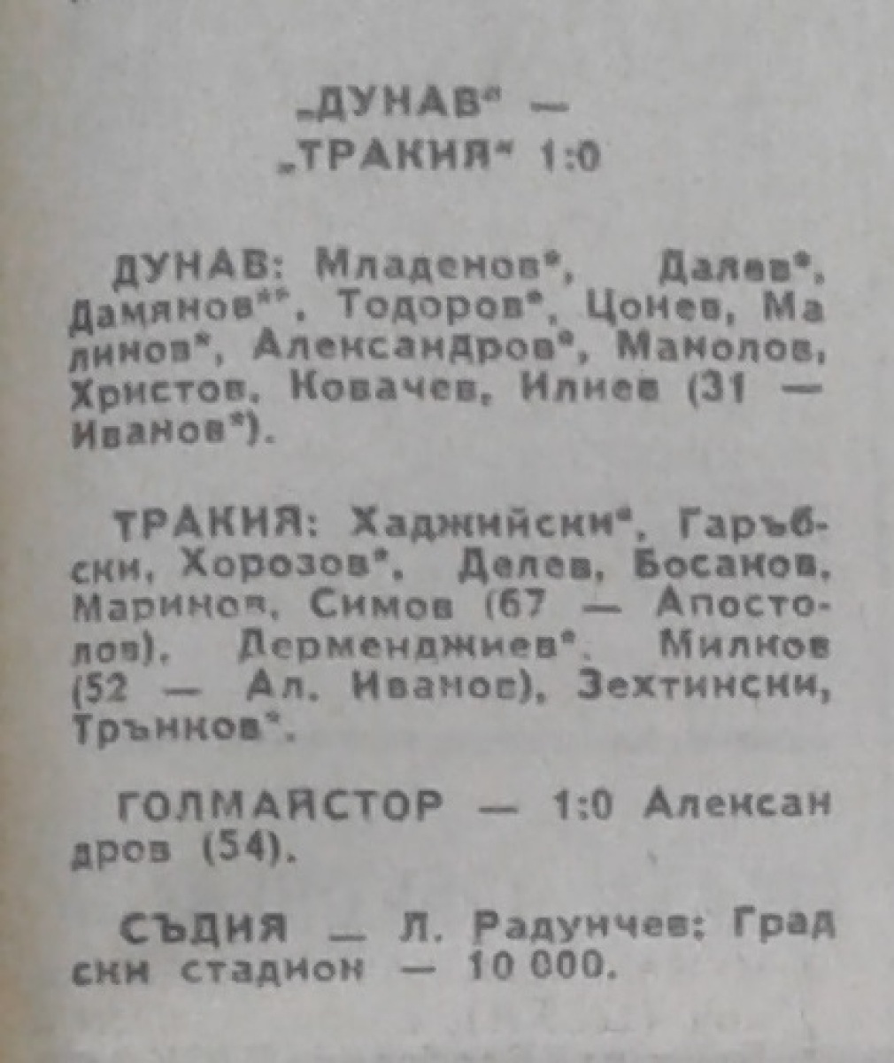 «Дунав» Русе - «Тракия» Пловдив - 1:0