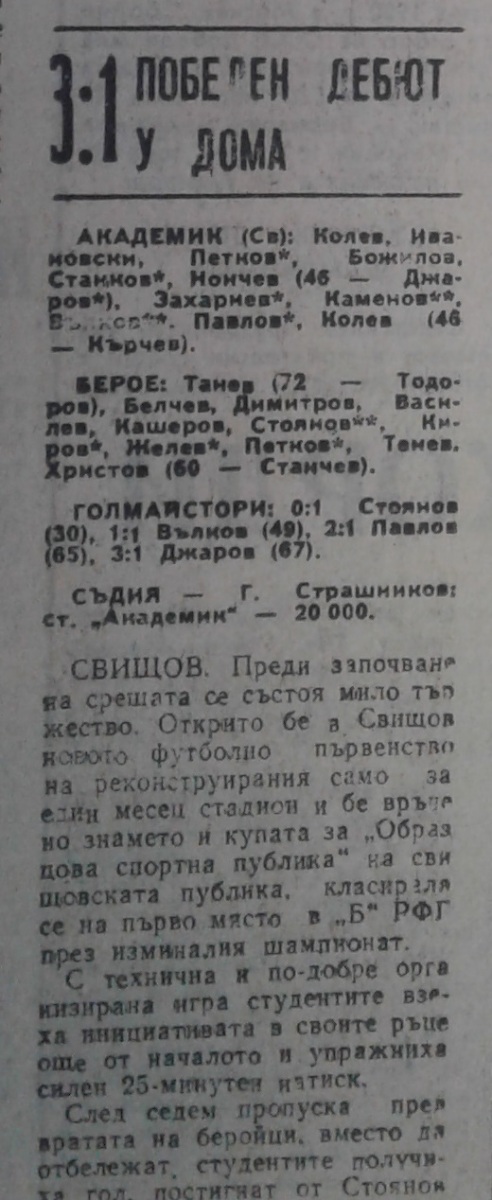 «Академик» Свиштов - «Берое» Стара-Загора - 3:1