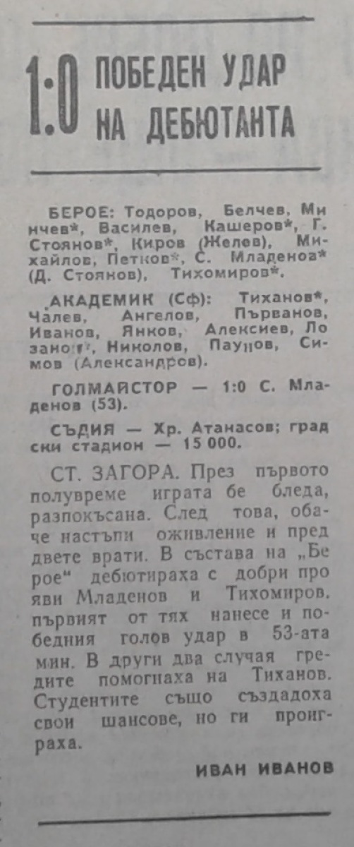 «Берое» Стара-Загора - «Академик» София - 1:0