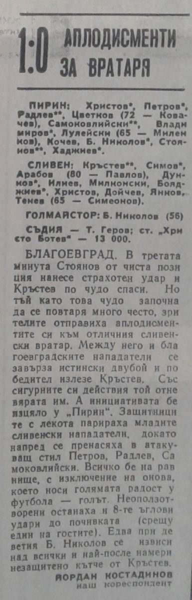 «Пирин» Благоевград - АФД Сливен - 1:0
