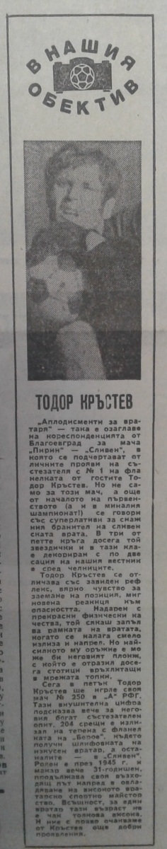 Тодор Крастев (Сливен) провёл свой 250-й матч в А РФГ.