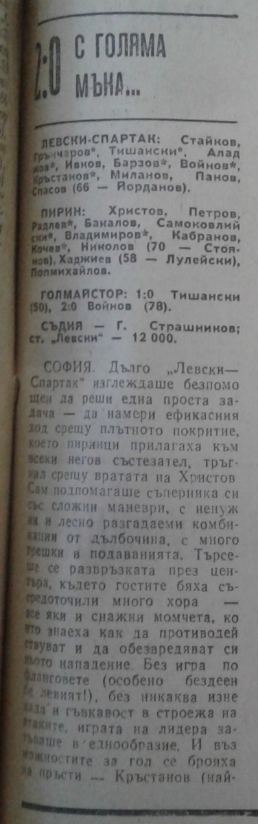 «Левски-Спартак» София - «Пирин» Благоевград - 2:0