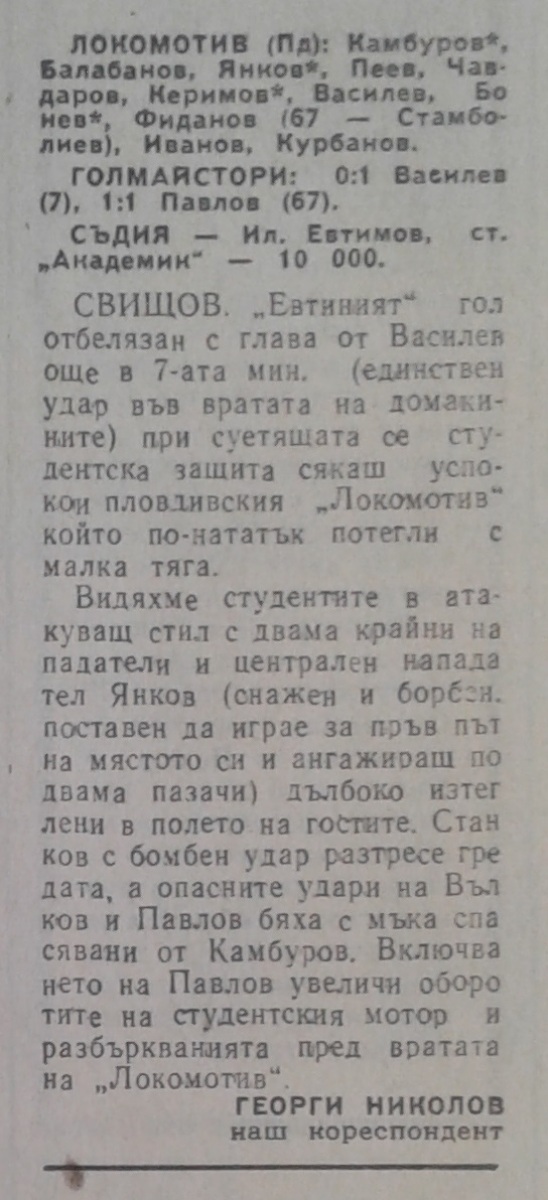 «Академик» Свиштов - «Локомотив» Пловдив - 1:1