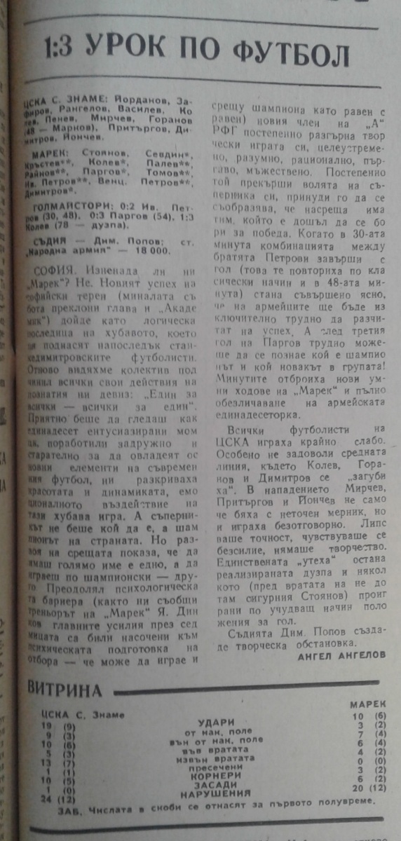 «ЦСКА Септемврийско Знаме» София - «Марек» Станке-Димитров - 1:3