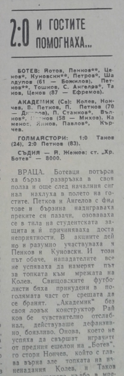 «Ботев» Враца - «Академик» Свиштов - 2:0