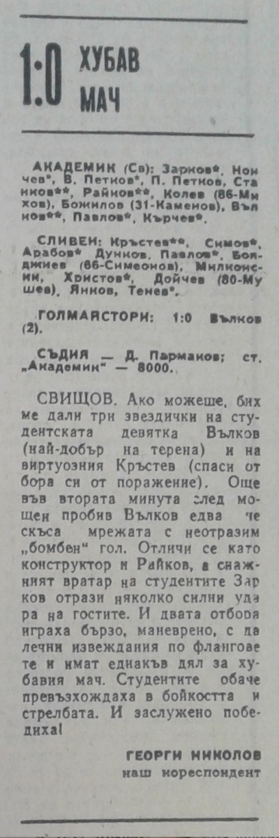 «Академик» Свиштов - АФД Сливен - 1:0