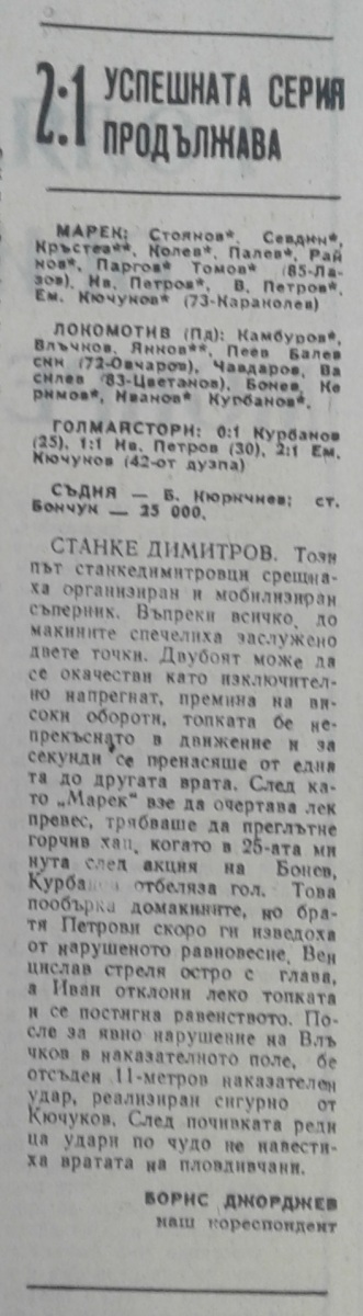 «Марек» Станке-Димитров - «Локомотив» Пловдив - 2:1