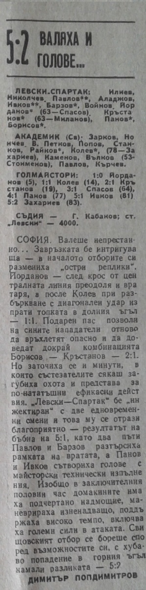 «Левски-Спартак» София - «Академик» Свиштов - 5:2