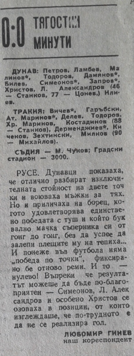 «Дунав» Русе - «Тракия» Пловдив - 0:0