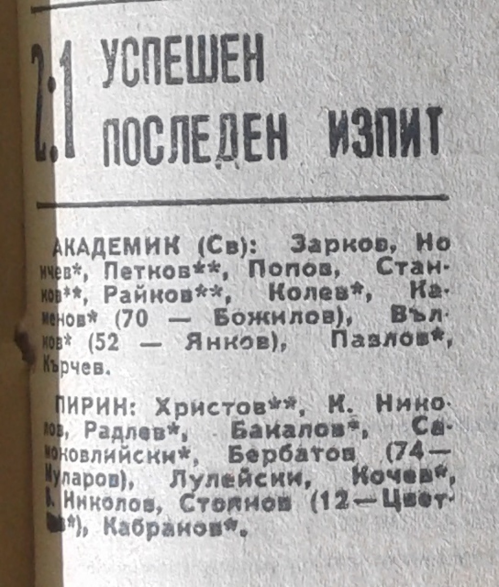 «Академик» Свиштов - «Пирин» Благоевград - 2:1