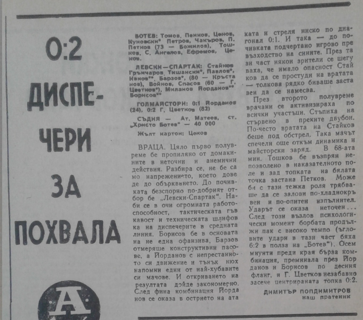 Матч был перенесён из за подготовки Левски-Спартак к ответному матчу с Атлетико Мадрид в Кубке кубков на 30 марта.