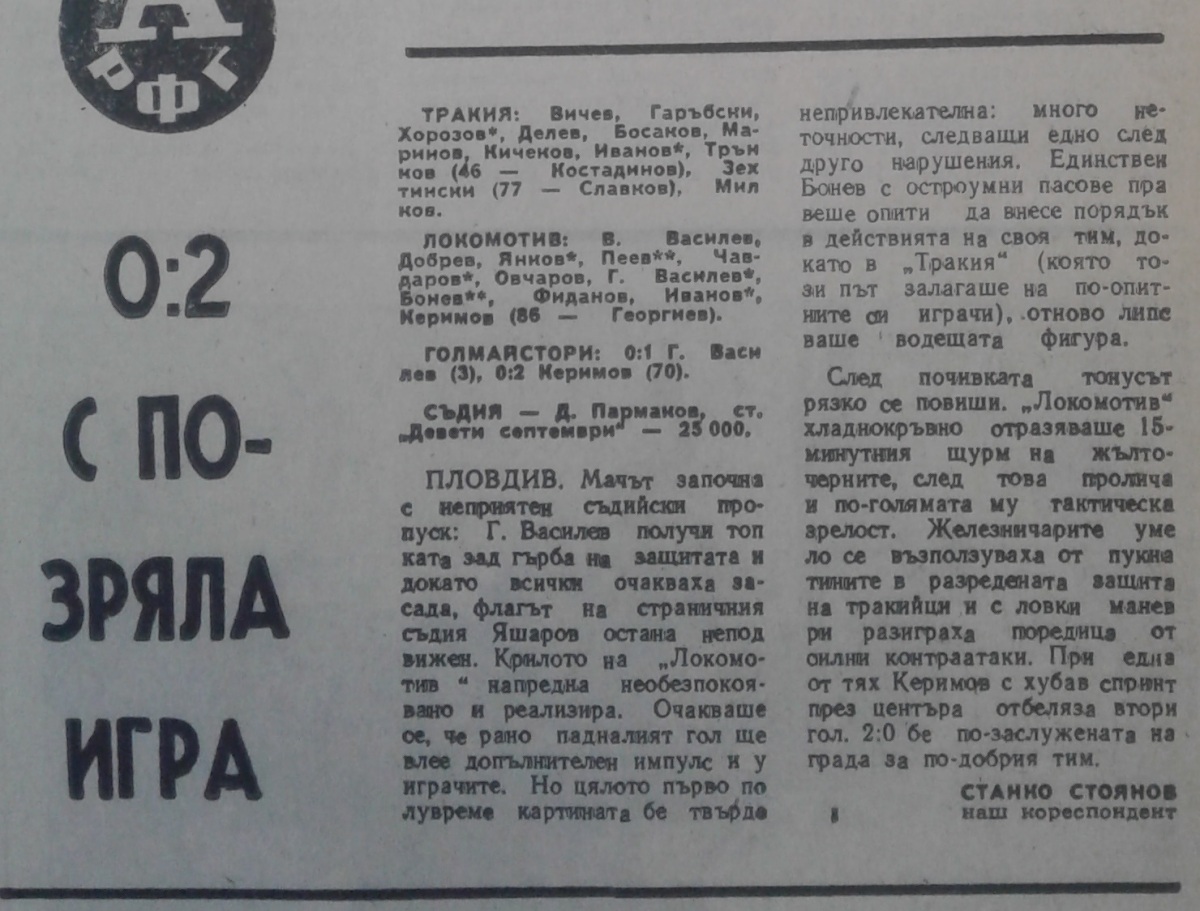«Тракия» Пловдив - «Локомотив» Пловдив - 0:2