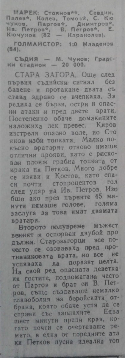 «Берое» Стара-Загора - «Марек» Станке-Димитров - 1:0