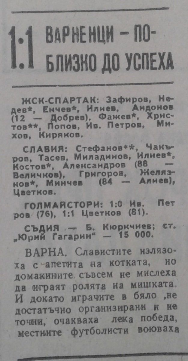 «ЖСК-Спартак» Варна - «Славия» София - 1:1