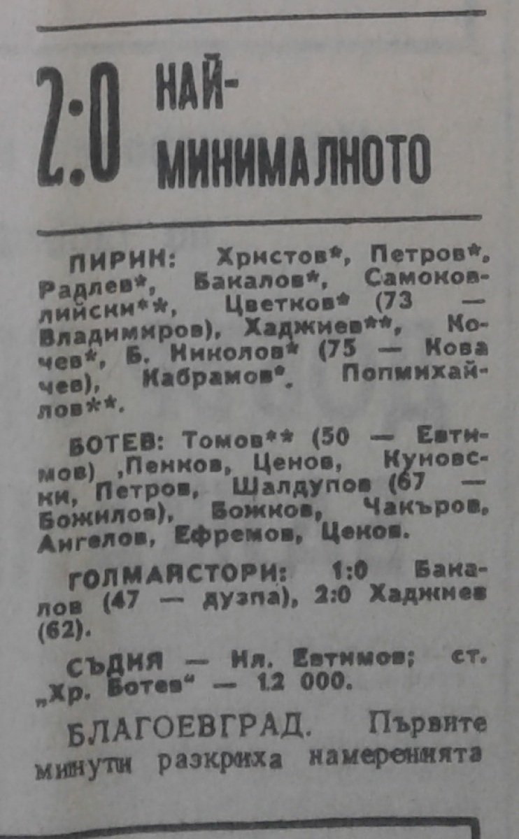 «Пирин» Благоевград - «Ботев» Враца - 2:0