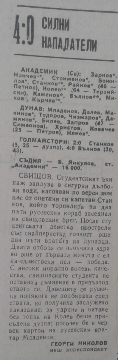 «Академик» Свиштов - «Дунав» Русе - 4:0