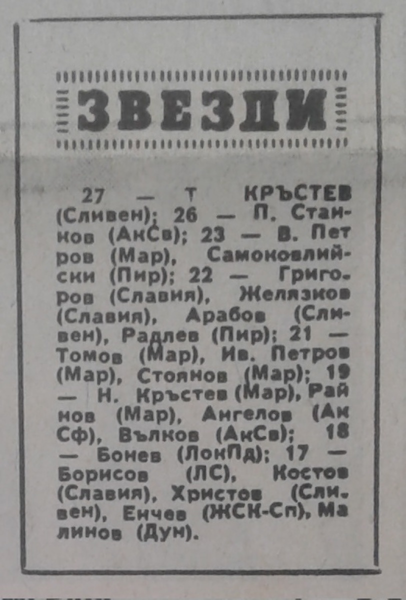Чемпионат Болгарии 1976/77. Группа А