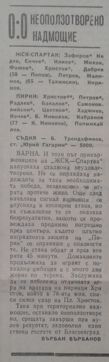 «ЖСК-Спартак» Варна - «Пирин» Благоевград - 0:0