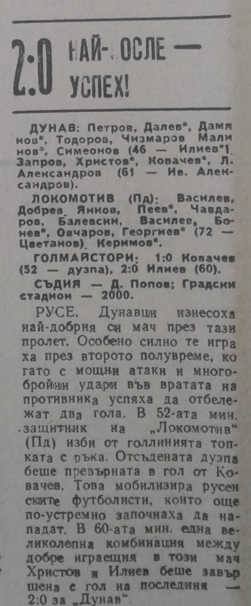 «Дунав» Русе - «Локомотив» Пловдив - 2:0