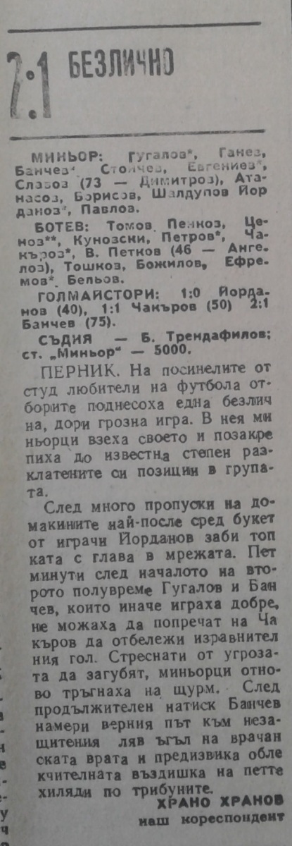 «Минёр» Перник - «Ботев» Враца - 2:1